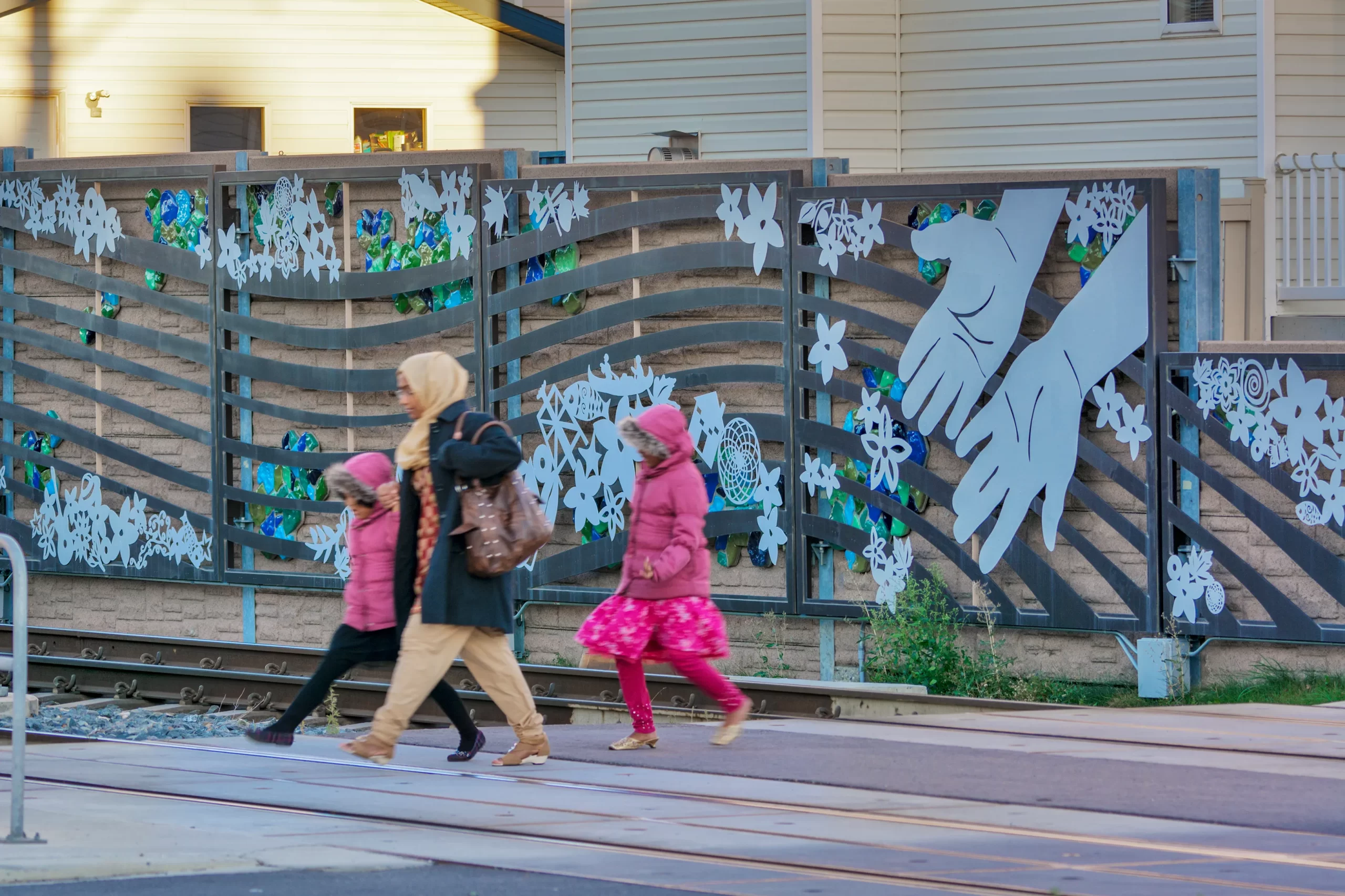 The resulting screen mural, crafted from ceramics, metal symbols, and LED lighting, was a beautiful testament to the creativity and ingenuity of the community, showcasing the power of collaborative and inclusive design processes. Furthermore, it celebrated the rich history and traditions of the Punjabi community while reminding commuters of the vibrant and diverse culture in the area. The installation exemplifies the power of art and culture to connect people and communities, providing a unique and engaging experience for those waiting on the platforms or moving through the station by train.